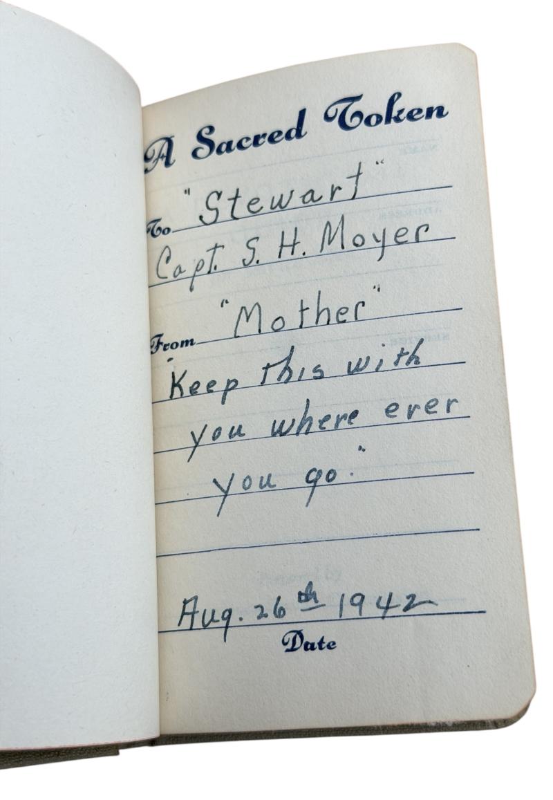 “To Stuwart Capt. S.H. Moyer” from “Mother keep this with you where ever you go” dated “August 26th 1942” in used but in very good condition.