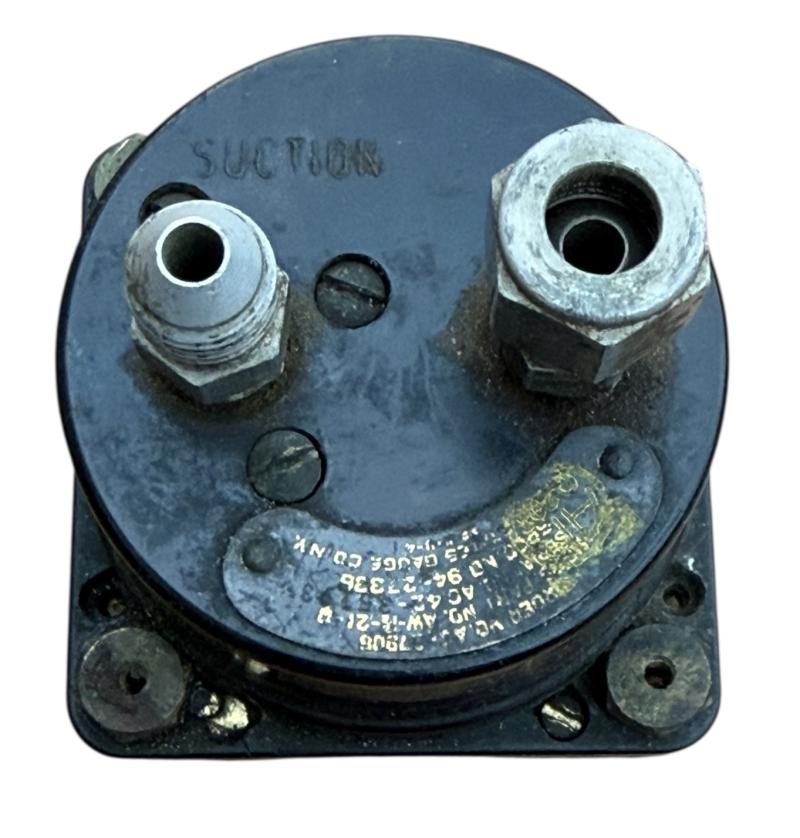 US Airplane Cockpit Instrument Nice used US WW2 Airplane cockpit instrument. “Suction” meter. Minor crack in the bakelite In used but good condition.