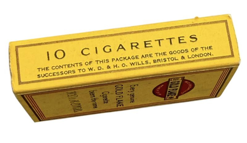 Near mint British WW2 “Gold Flake” cigarettes package with content. (10 cigarettes) Manufactured by “W.D.& J.O. Wills, Bristol & London” perfect package impossible to upgrade!