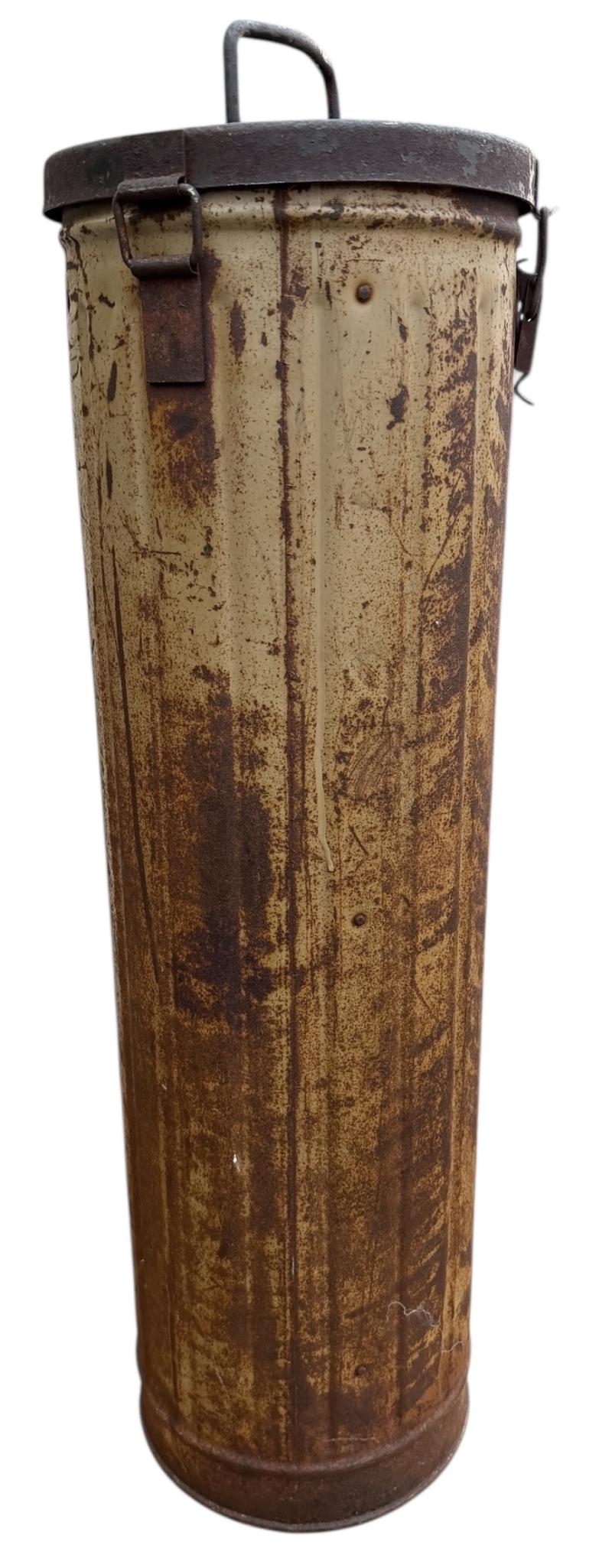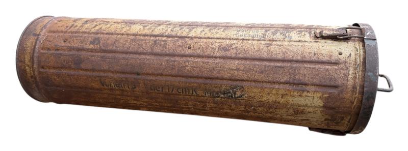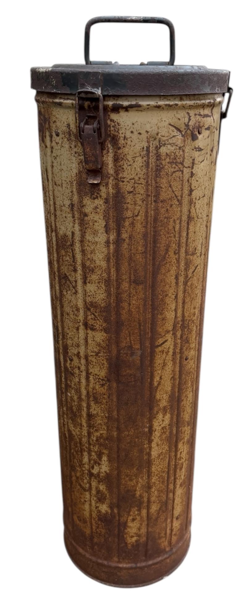 Very nice used and decorative metal “17cm Kart.” container. In 70% of its original camo paint.