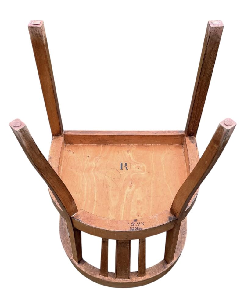Kriegsmarine wooden Chair Very nice used Kriegsmarine wooden chair. Nicely marked “M.St.V.K” which means “Marine Stutzpunkt Kiel” dated “1938” In used but in very good condition. Great in a display!