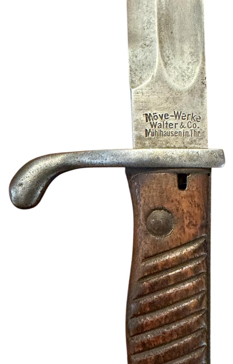 Made by “Möve-Werke Walter & Co., Mühlhausen in Thr.” with its original metal scabbard.