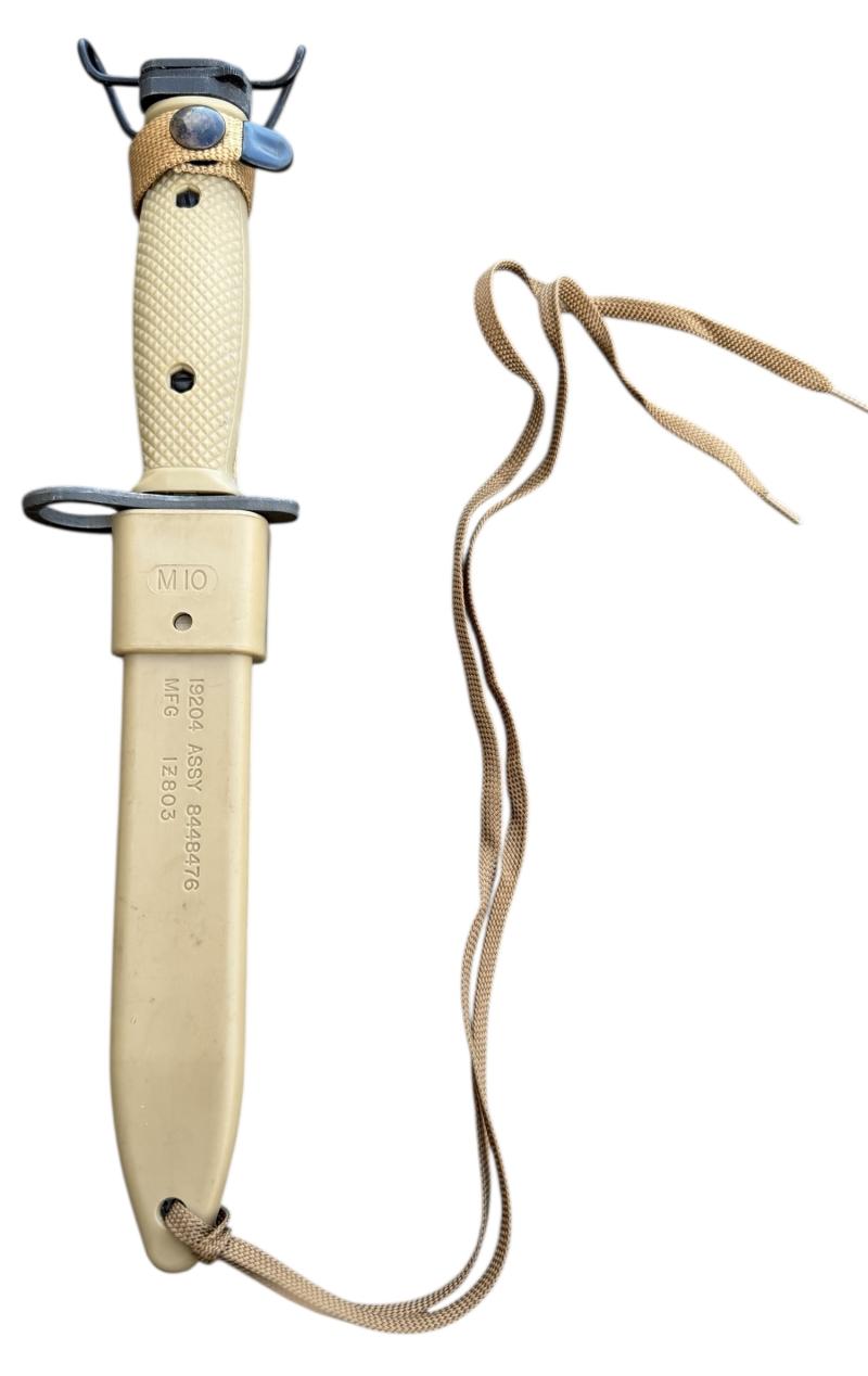 Scabbard marked “M10 19204 ASSY 8448476 MFG IZ803 nice bayonet in very good condition.