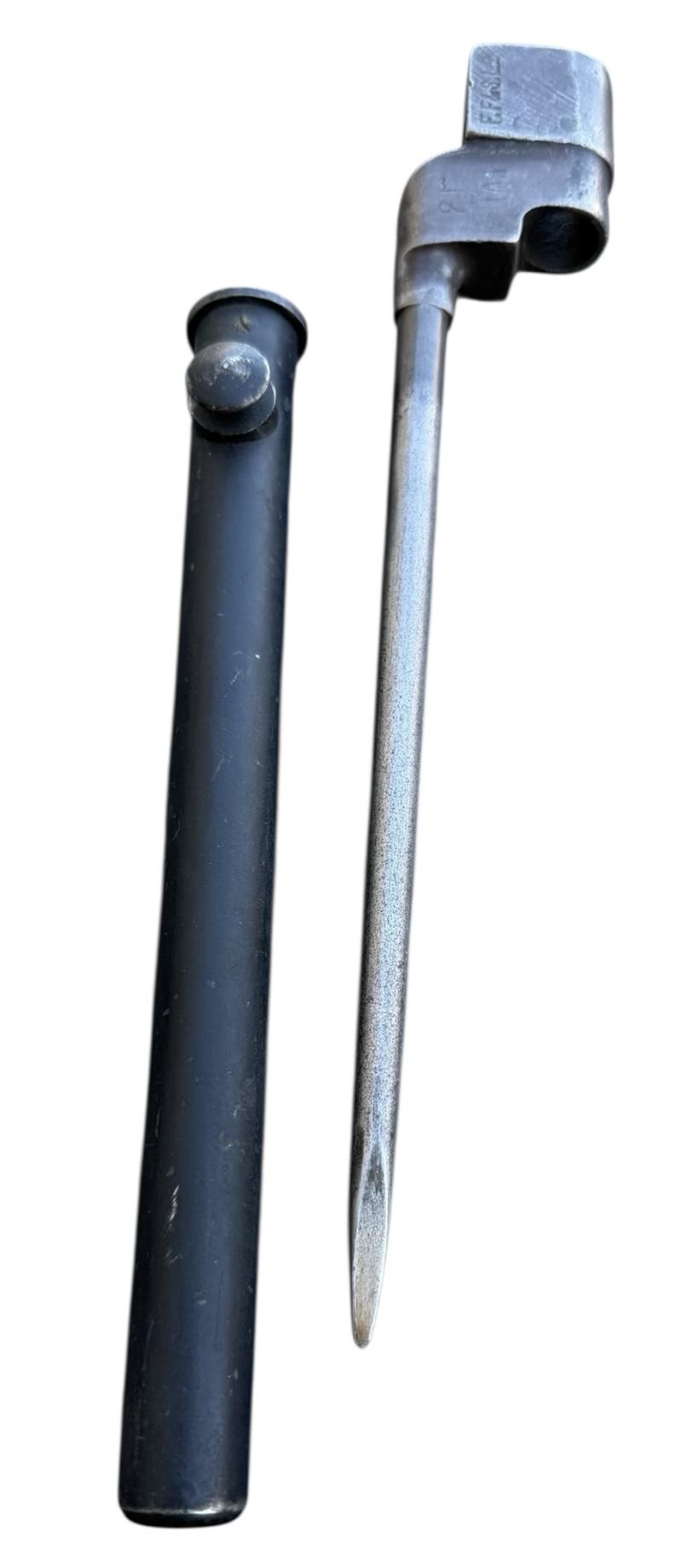 Nice British WW2 dated number 4 MKII so-called “Spike” bayonet. With its original metal scabbard.