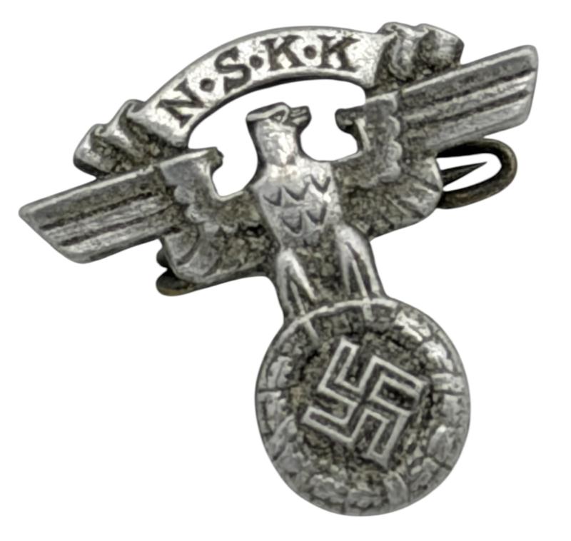 Very nice small “NSKK” (National Sozialistische Kraftfahrer Korps) metal insignia. As used on NSKK collar tabs. “RZM” marked. Attachment pin present.