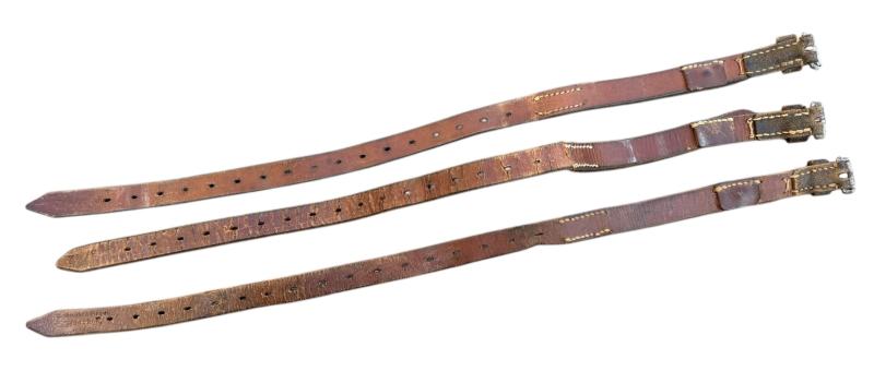 3 Wehrmacht Equipment Straps Used for Zeltbahn’s and other equipment. Maker (code) marked Overal in used but in very good condition. Great to complete Wehrmacht equipment collection.