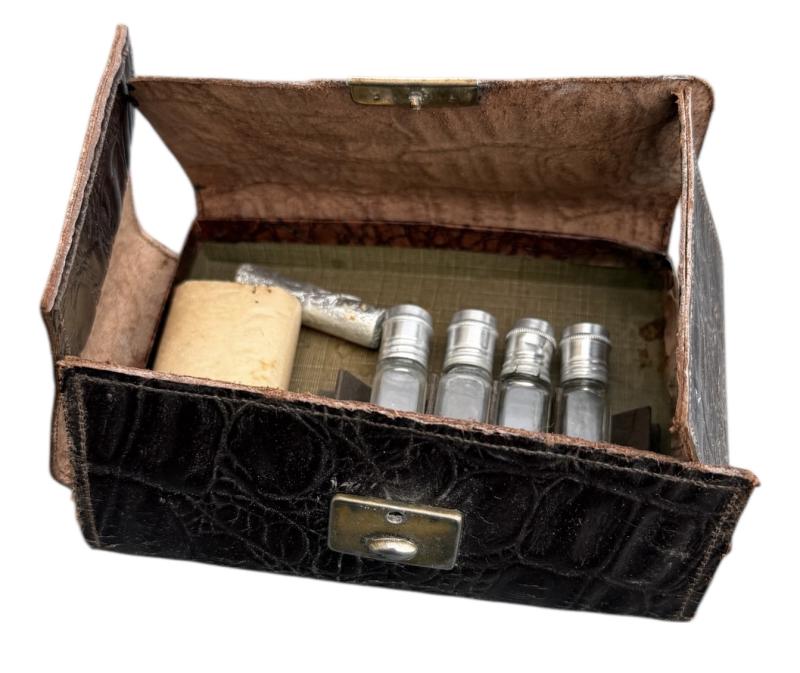 Wehrmacht era Pocket Medical/Medicine Pouch Nice Wehrmacht era pocket medical/medicine pouch. “Taschen-Apotheke” with little medicine bottles and packaging. In used but in good condition.