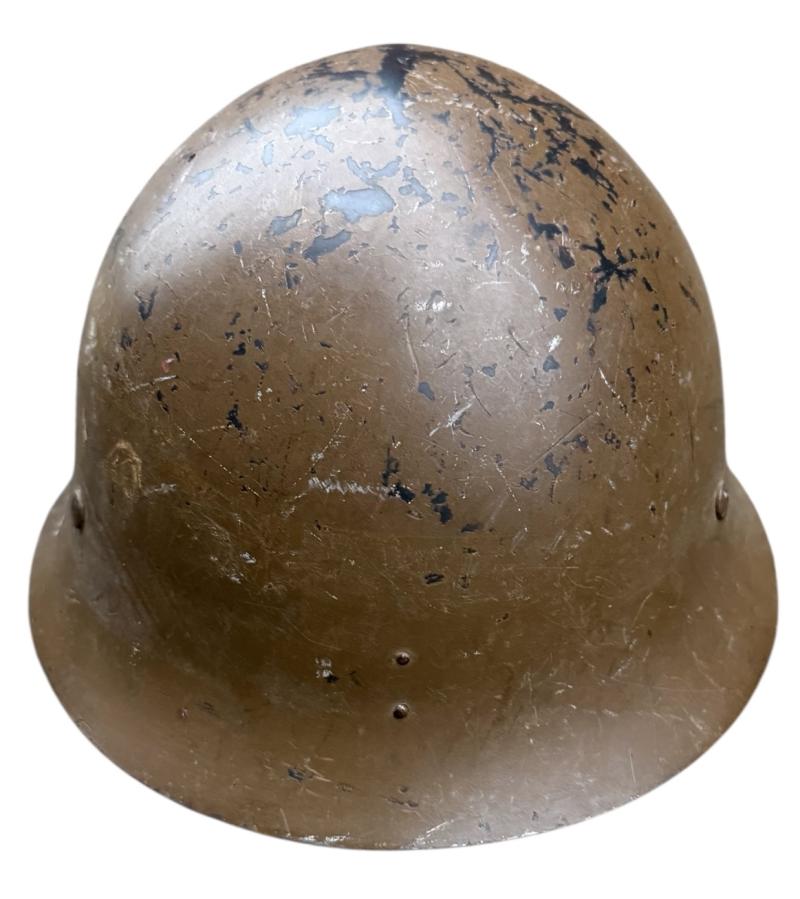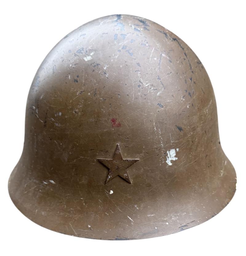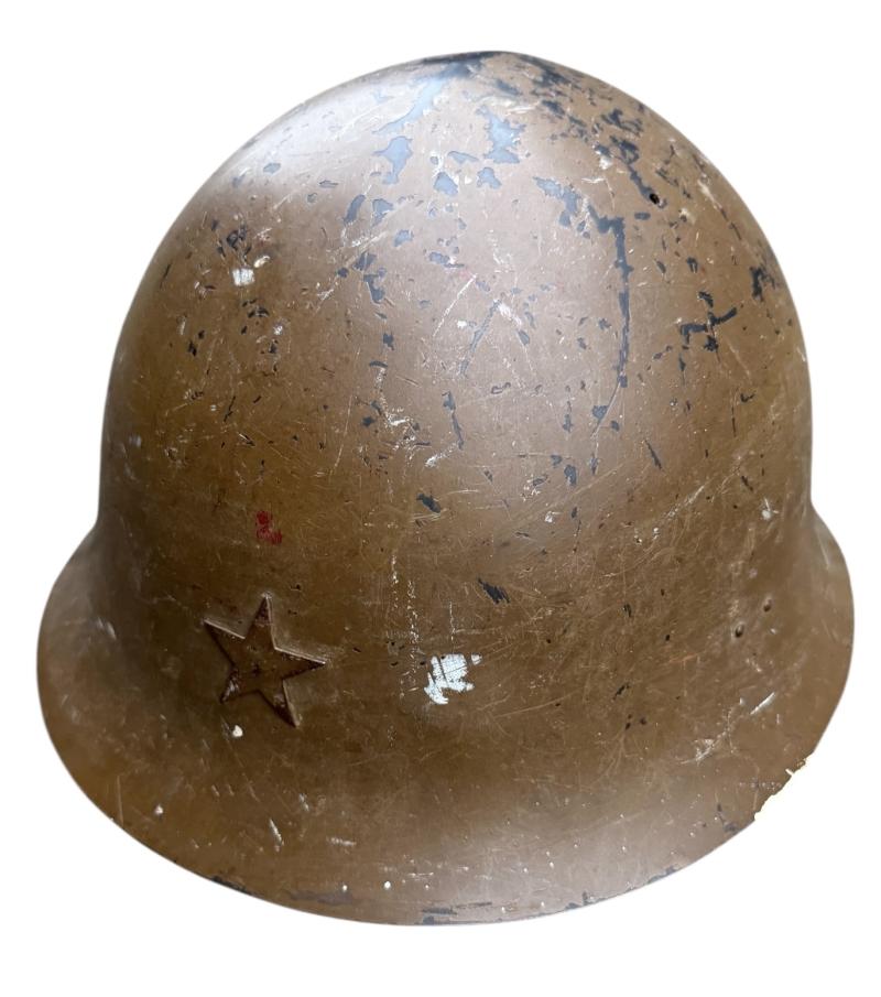 Helmet comes with its original liner and full length helmet straps. The helmet has 98% of its original camo paint. And the Japanese Imperial metal star is present. Overall a very nice Japanese T90 combat helmet in used but in outstanding condition. Great in a Japanese or helmet collection!