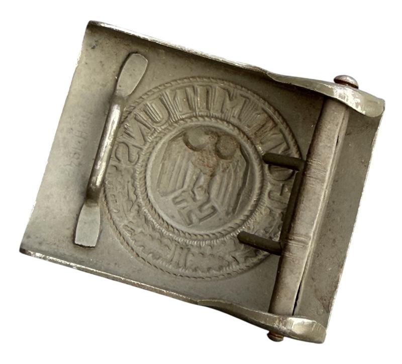 Very nice “N&H 1942” marked Wehrmacht steel belt buckle which is “Noelle & Hueck”, Lüdenscheid in 1942. In 99% of its original field/grey camo paint.