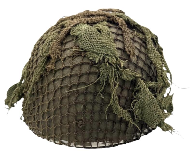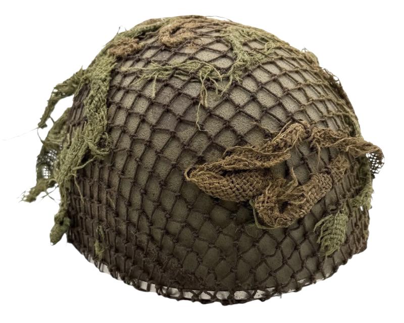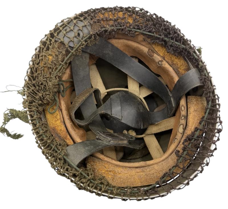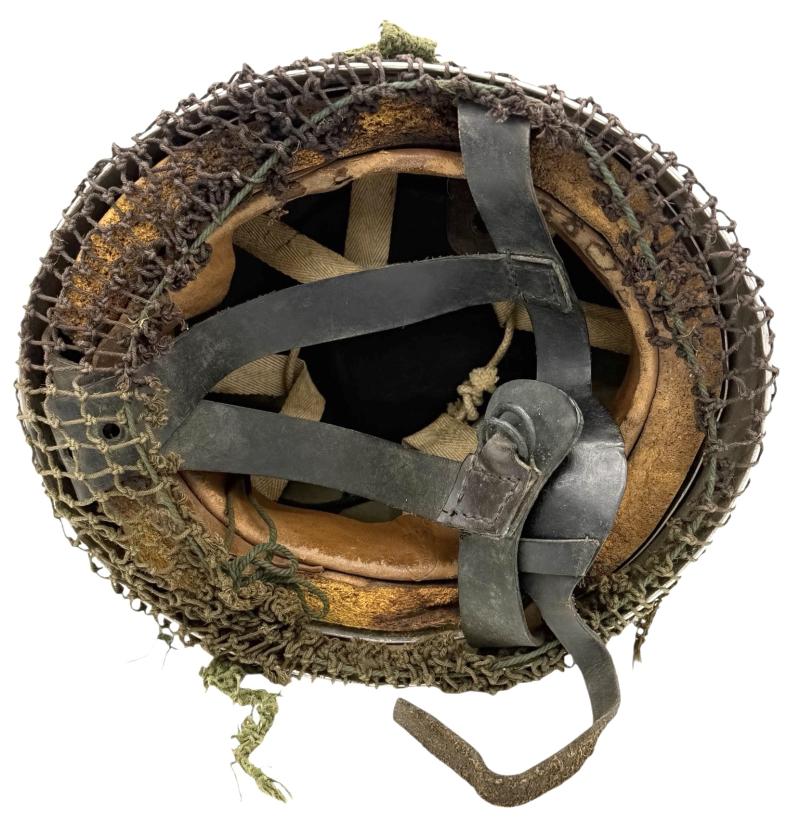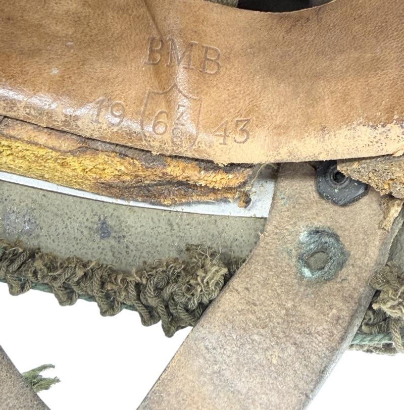 Very nice used and untouched British WW2 2th model Paratrooper helmet with original British WW2 camo net. Maker marked “BMB” (Briggs Motor Bodies) in size “6.7/8” and dated “1943” with its original liner with leather helmet straps. In 98% of its original British WW2 grey rough camo paint. Overall a fantastic untouched original mid war British WW2 Paratrooper helmet in very good condition.