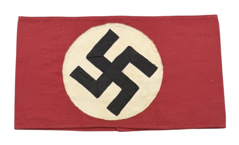 SA/NSDAP Armband Very nice SA/NSDAP armband with cloth stiched swastika. In used but in very good condition. Great to complete a tunic, or as part of an armband collection.