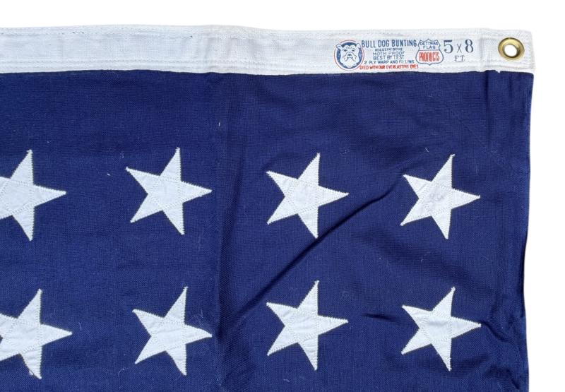 Very nice US WW2 48 star flag in its original clipboard box. Made by “Bull-Dog Bunting”