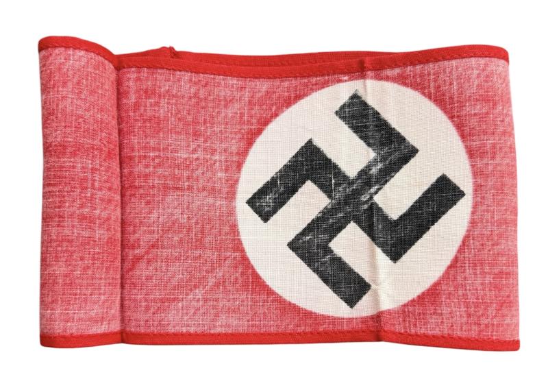 SA/NSDAP Swastika Armband Nice late printed sample of the SA/NSDAP swastika armband. Worm on all kinds SA/NSDAP related tunics. In usec but in very good condition.