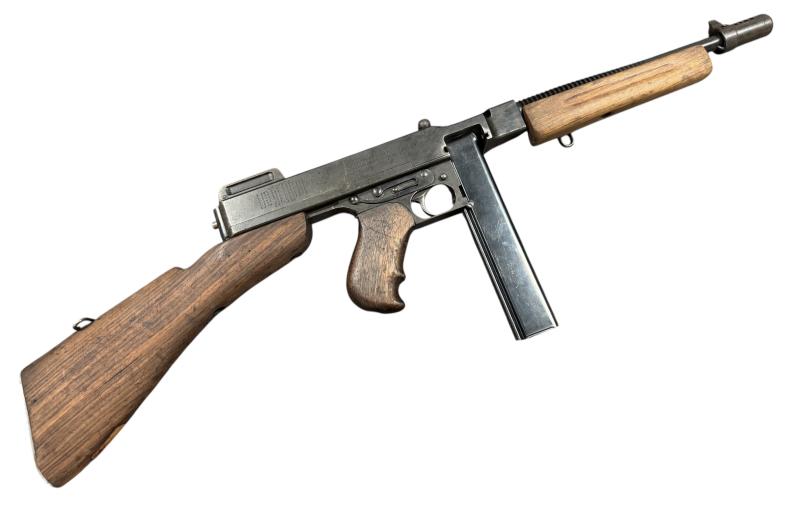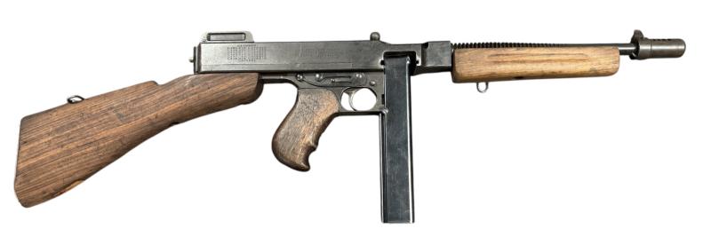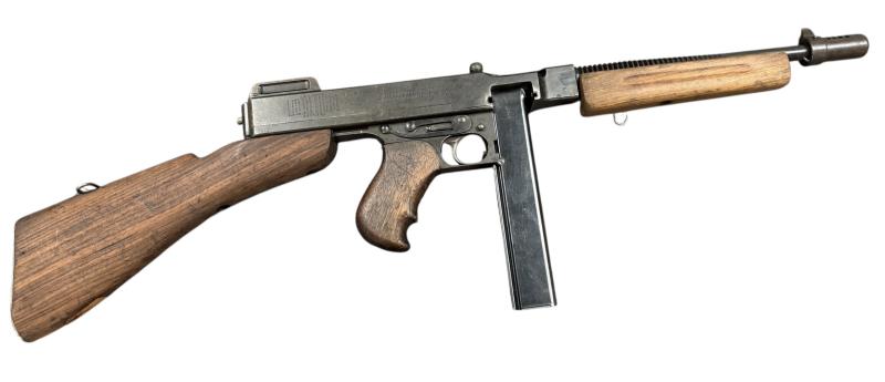 US WW2 28A1 Thompson submachine gun with British WW2 modifications.