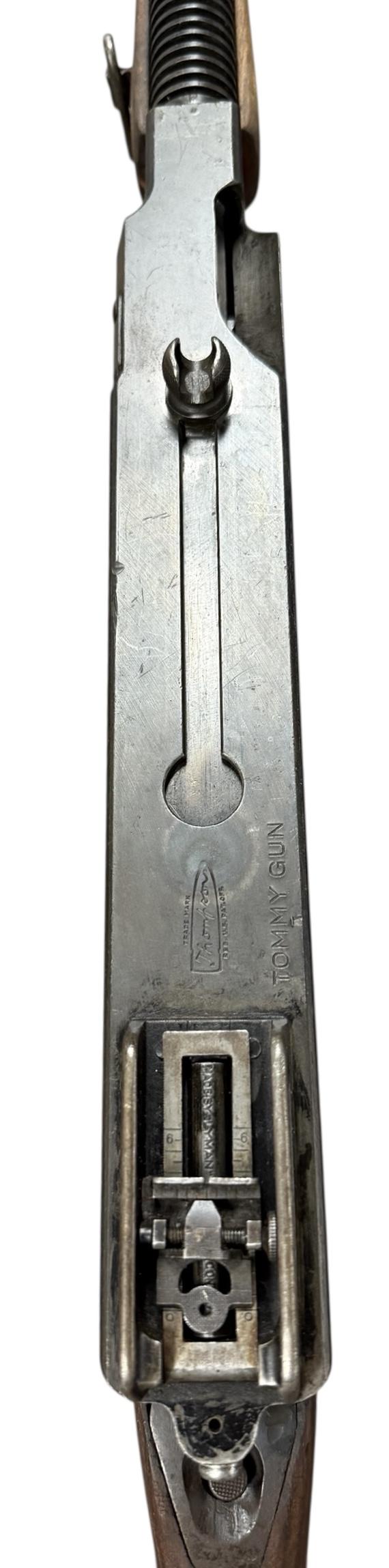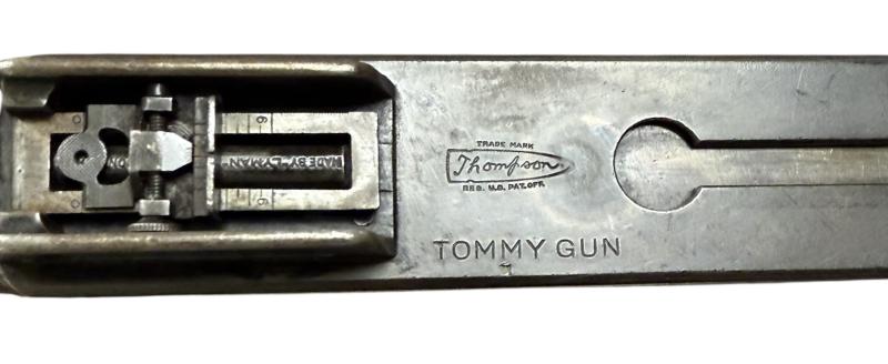 Marked on top of the gun “Tommy Gun” and stock re-enforced with 2 screws on the side.