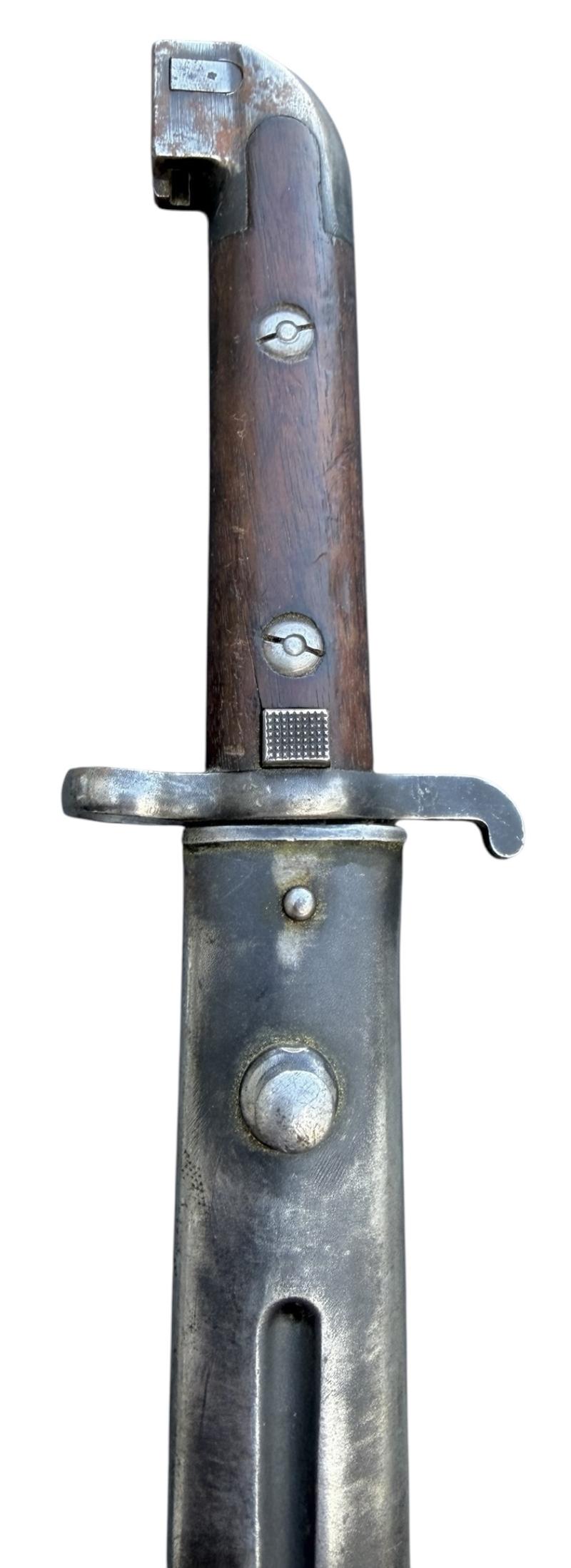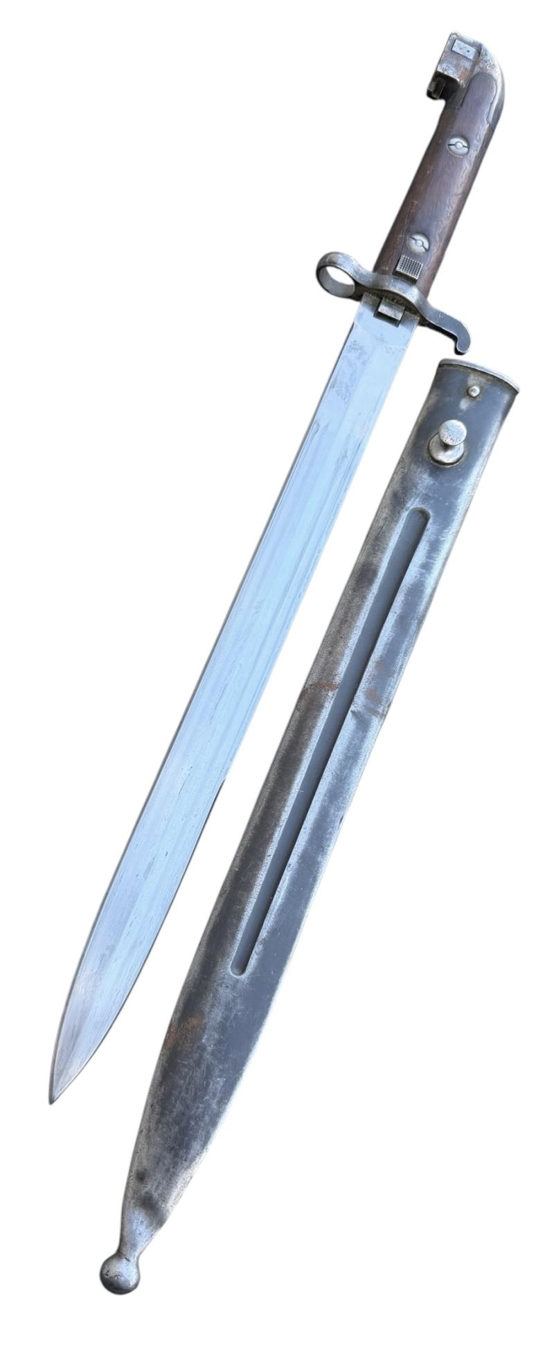 Used but very nice Swedish M1914 bayonet for the Swedish “Mauser”. nice high quality made bayonet with wooden grips and steel scabbard.