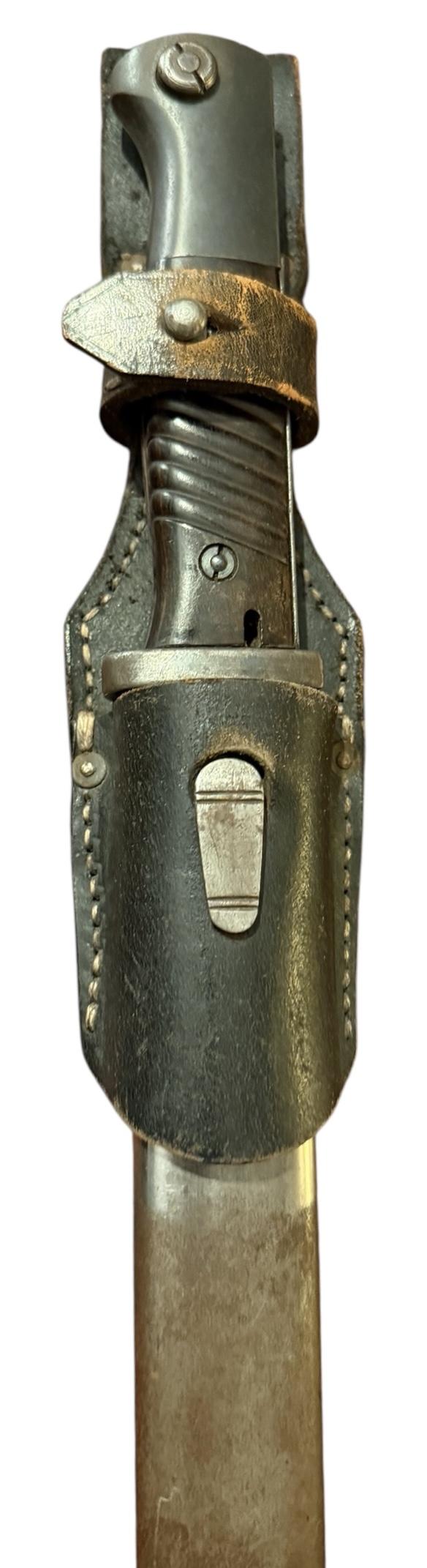 Bayonet with nice Bakelite grips and leather frog,