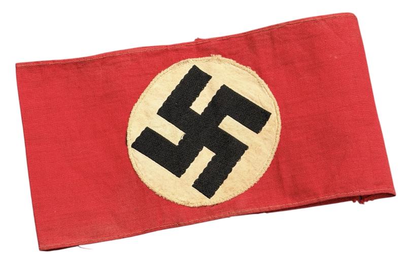 SA/NSDAP Armband Very nice SA/NSDAP armband with machine woven swastika. In used but in very good condition. Great to complete a tunic, or as part of an armband collection.