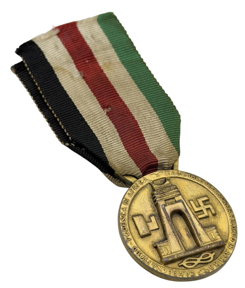 German-Italian WW2 Afrika Campain Medal Very nice “German-Italian” WW2 “Afrika” campain madel “Itallienisch-Deutschen Feldzug in Afrika” With its original ribbon. In very good condition.