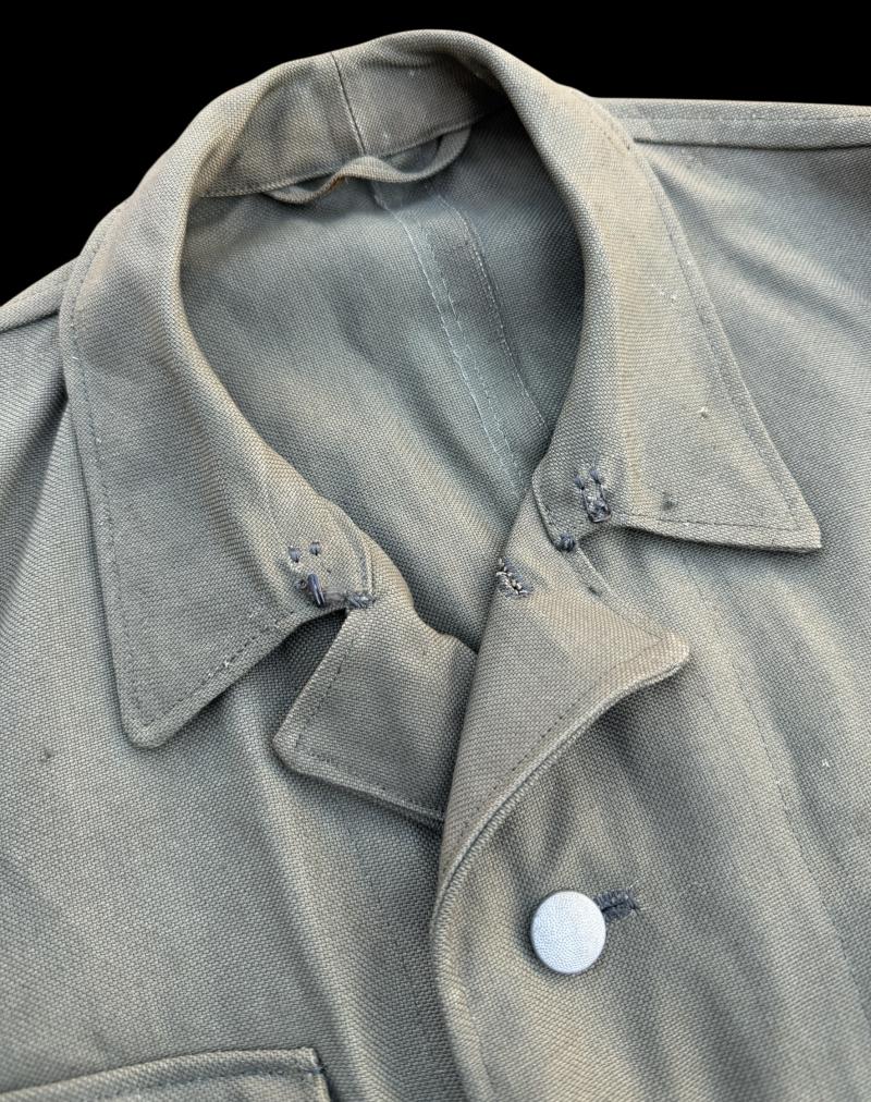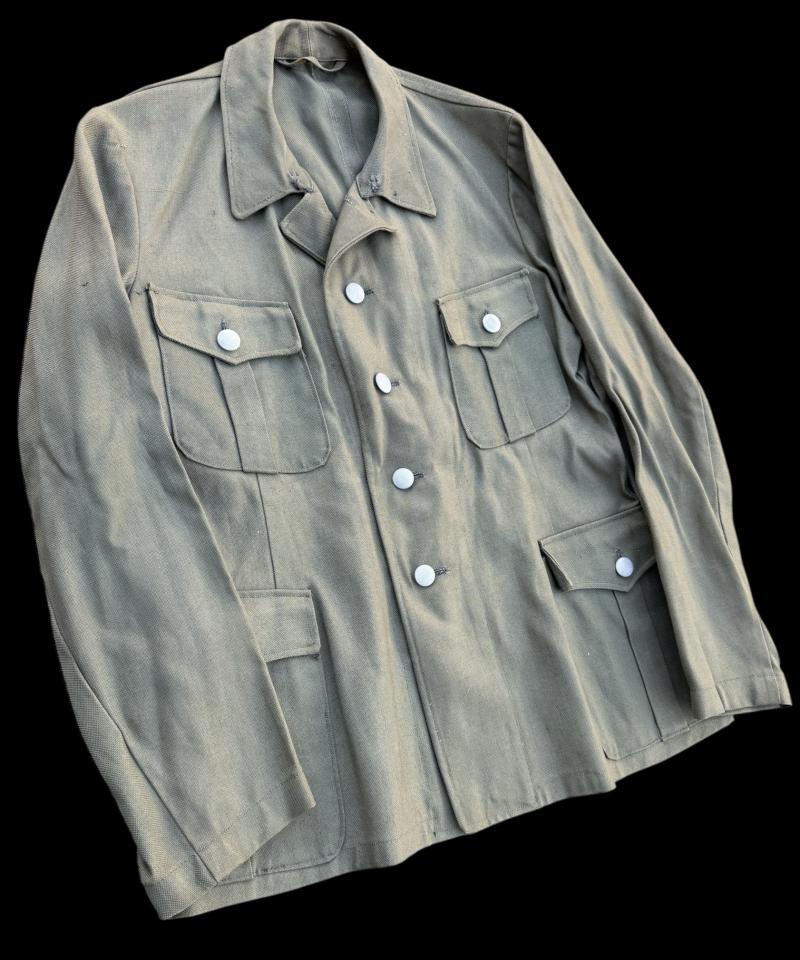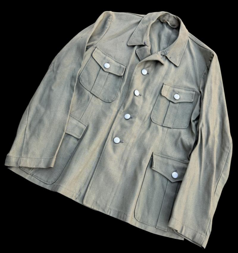 Fantastic unissued SSVT/Wehrmacht/WaffenSS summer 4 pocked tunic with all its buttons but had never insignia add to it. Never being stamped inside either! Just a fantastic unissued summer tunic.