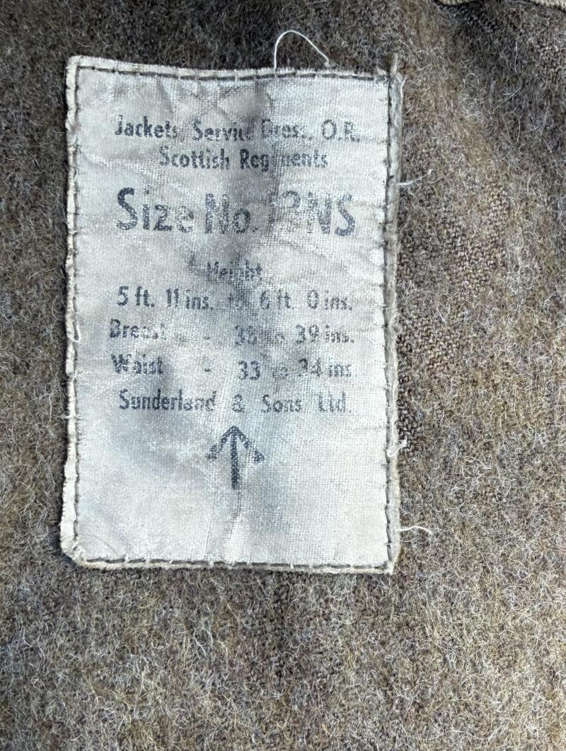 Salty but original 1920 Pattern British/Scottish WW2 service dress. With cloth maker label, marked