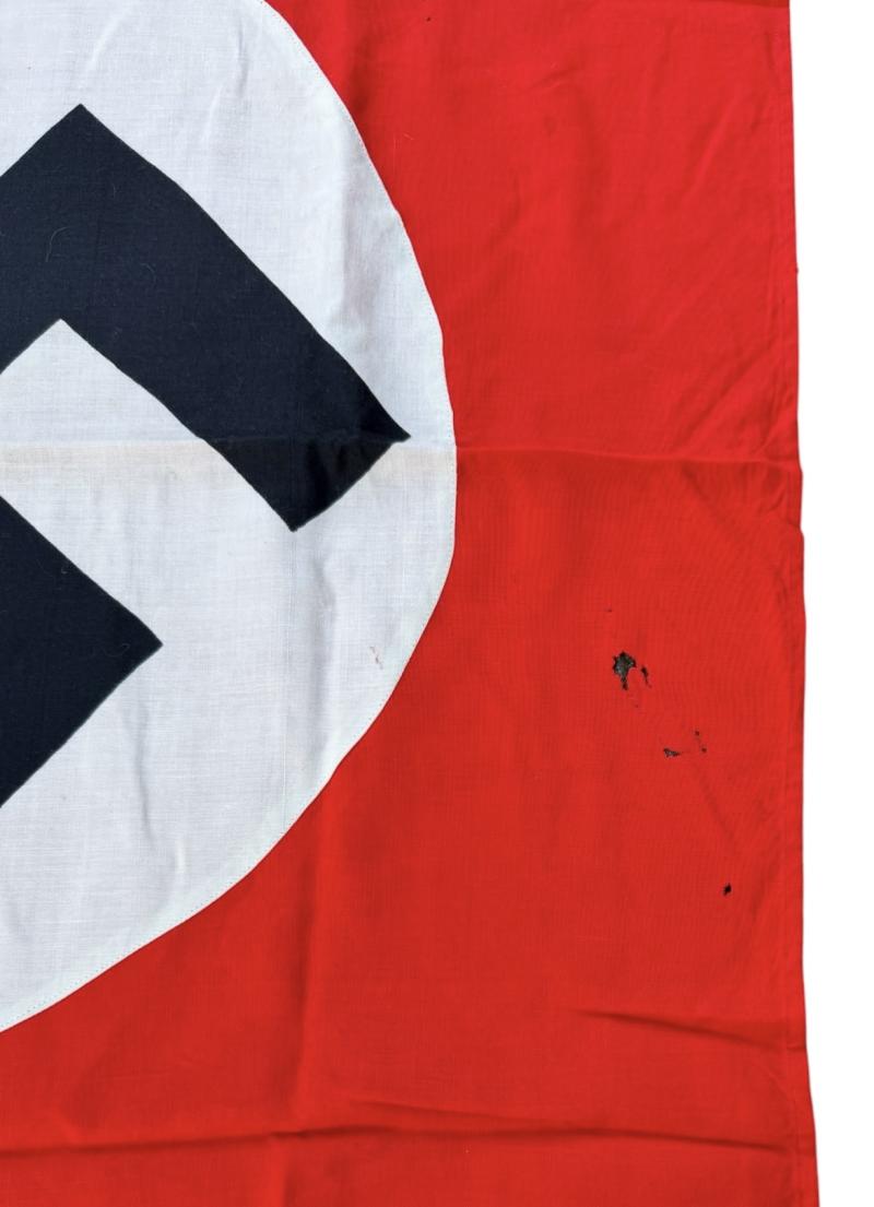 This size was used on “Kubel wagen, Swimmwagen and heavy motorcycle’s with side car”. For the troops in the spearhead of the attack. So support fighter planes did not destroy there own troops! Flag has a few minor moth nips. But overall in very good condition.