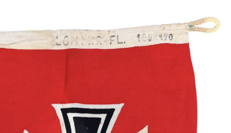 Reichs Kriegsfahne Very nice used Reichs Kriegsfahne The flag is marked “LOH. RK FL” In very good size “170cm x 100cm” in near mint condition. Great for display! Hard to find these days!