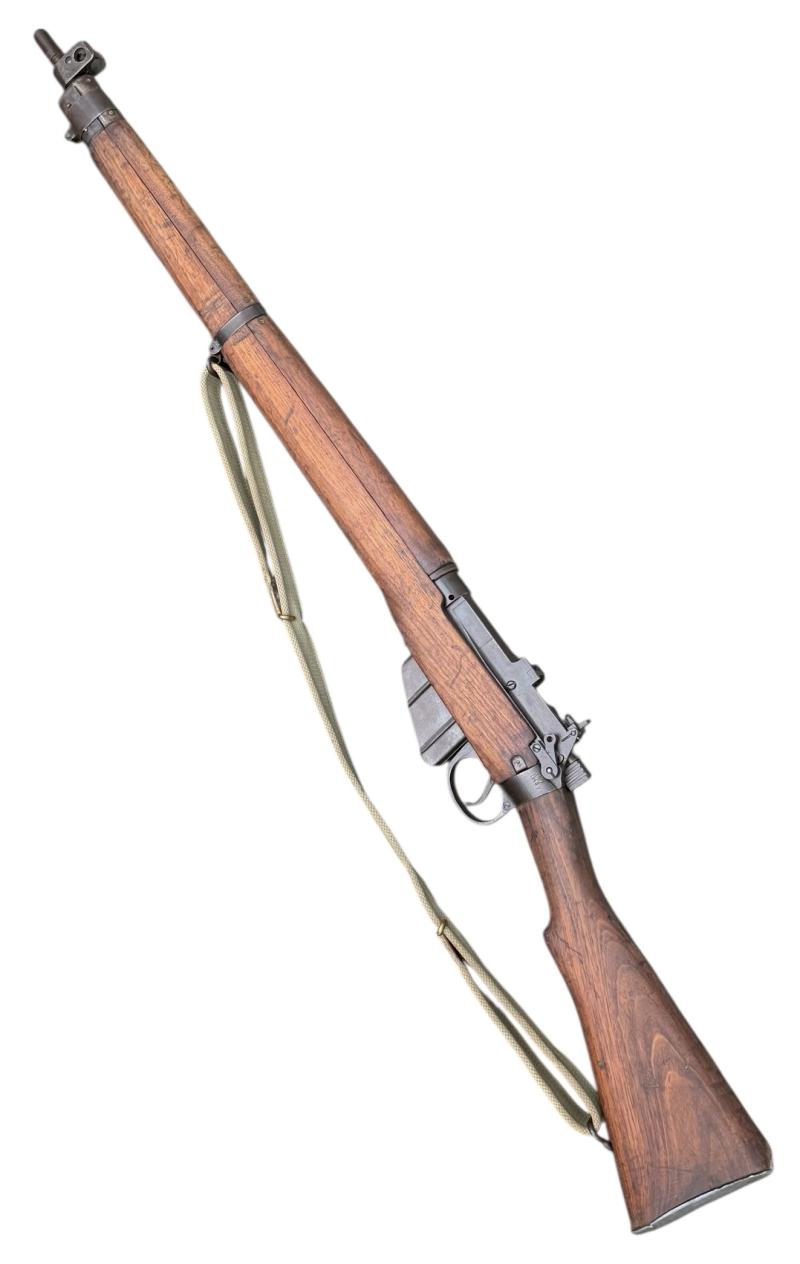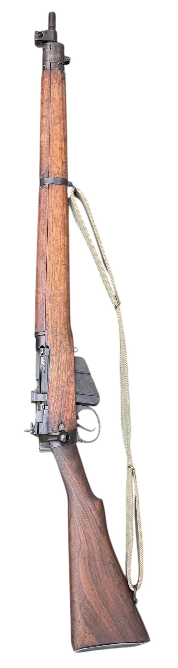 The “Lee Enfield” MKI number 4 was a standard British WW2 weapon Cal. 303 British with a 10 round box magazine. Dated “1943”. Fantastic de-activated bolt action rifle in used but very good condition.