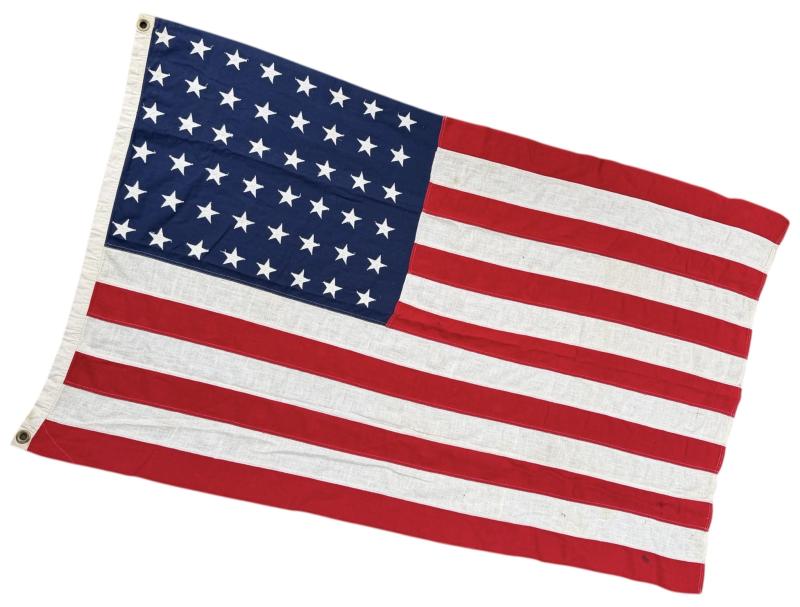US WW2 48 Star Flag Nice used US WW2 48 star flag with 48 stiched stars. Non maker marked Flag in size “3 x 5” feet In used but in very good condition. Great for decoration!