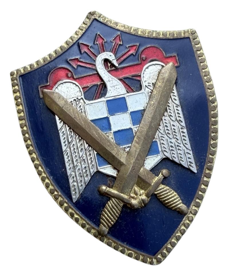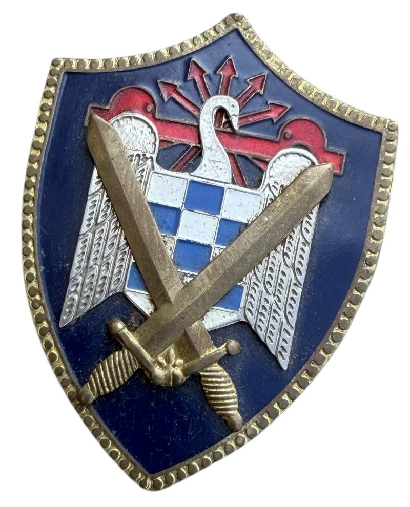 Post WWII Spanish Franco Fascist Falange Youth Enamel Pinback PB Badge Nice made badge with its original attachment needle In used but in very good condition