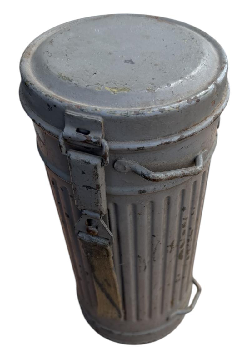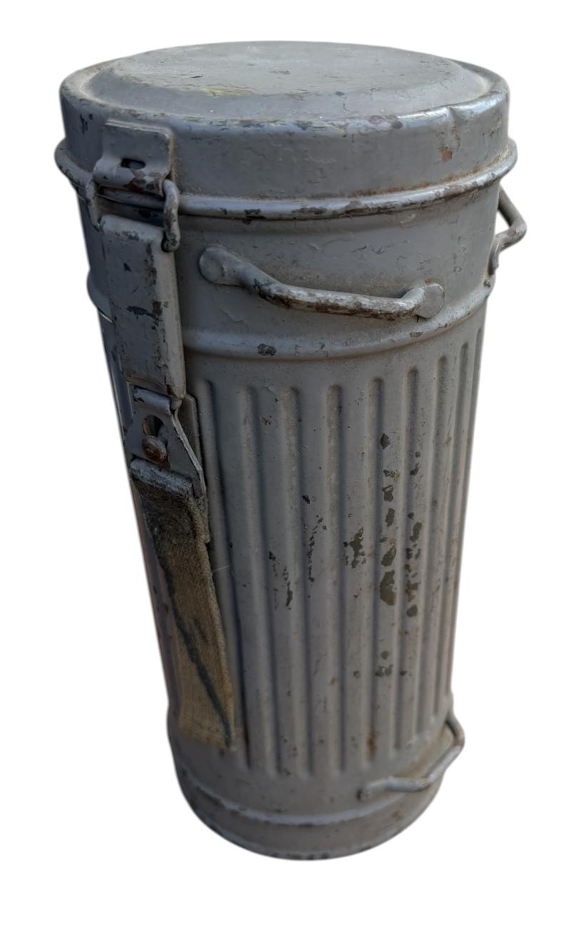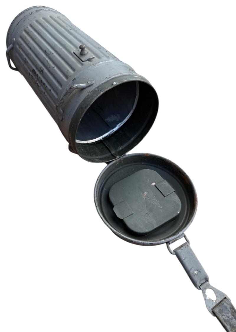 Kriegsmarine M31 Gasmask Cannister Used but very nice Kriegsmarine M31 gasmask cannister. In Kriegsmarine vessel camo paint. Opening strap present. Overall in used but in very good condition.