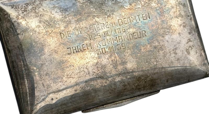 Nicely engraved “Die Offiziere u. Beamten des III/136 Irem Kommandeur 30-11-39”.