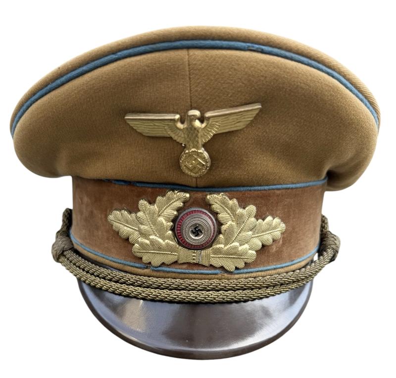 Fantastic used NSDAP political leader visor cap “Schirrmutze” with blue color for “Orts” level