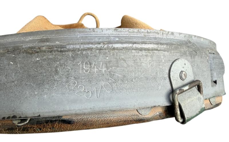 Very nice used Wehrmacht/Lufwaffe/WaffenSS/Kriegsmarine helmet liner with sink liner ring. Maker marked and dated “1944” in size “58” and complete with original helmet liner drawstring. Overall a great liner to complete a nice helmet!