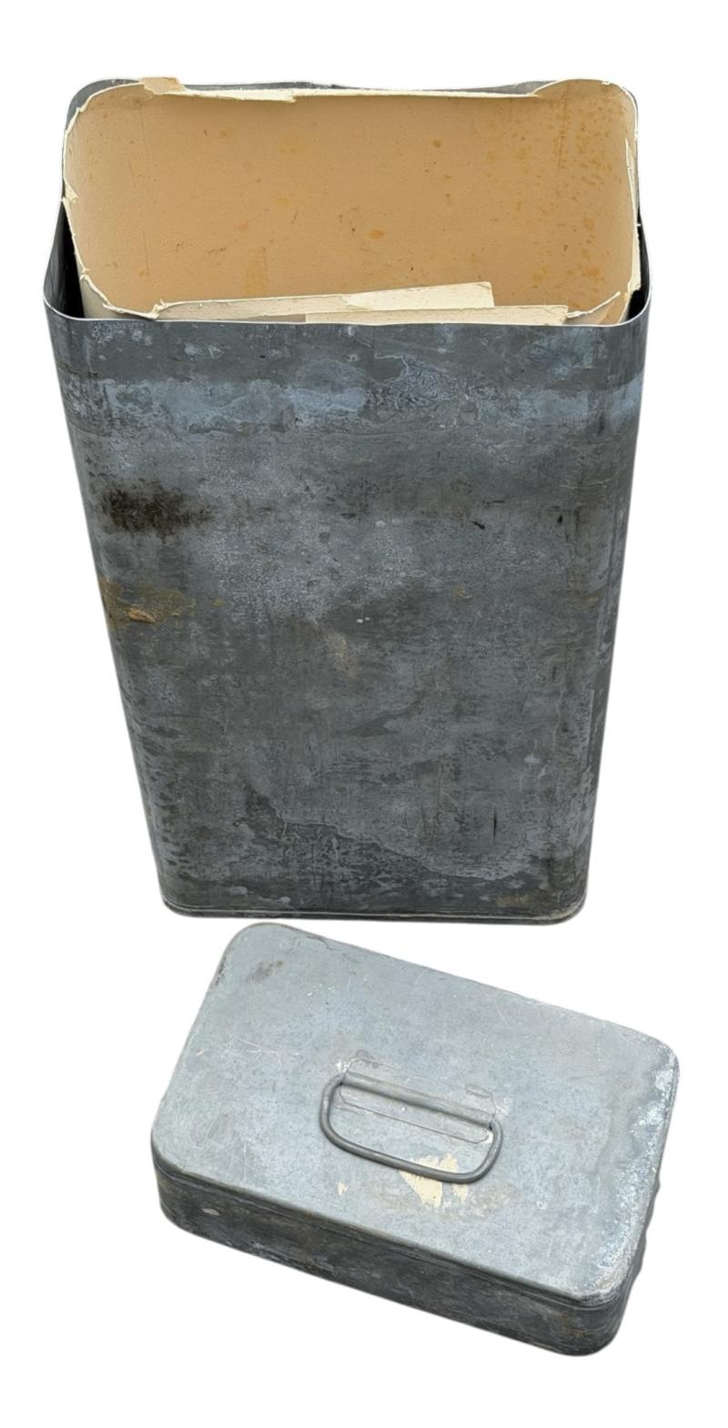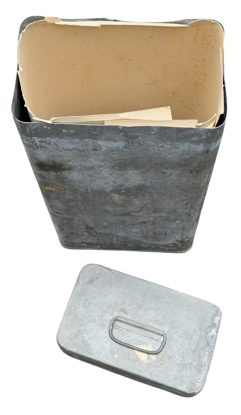 Nice metal/sink made Luftwaffe “Incendiary bombs Container”. Small part of content label present