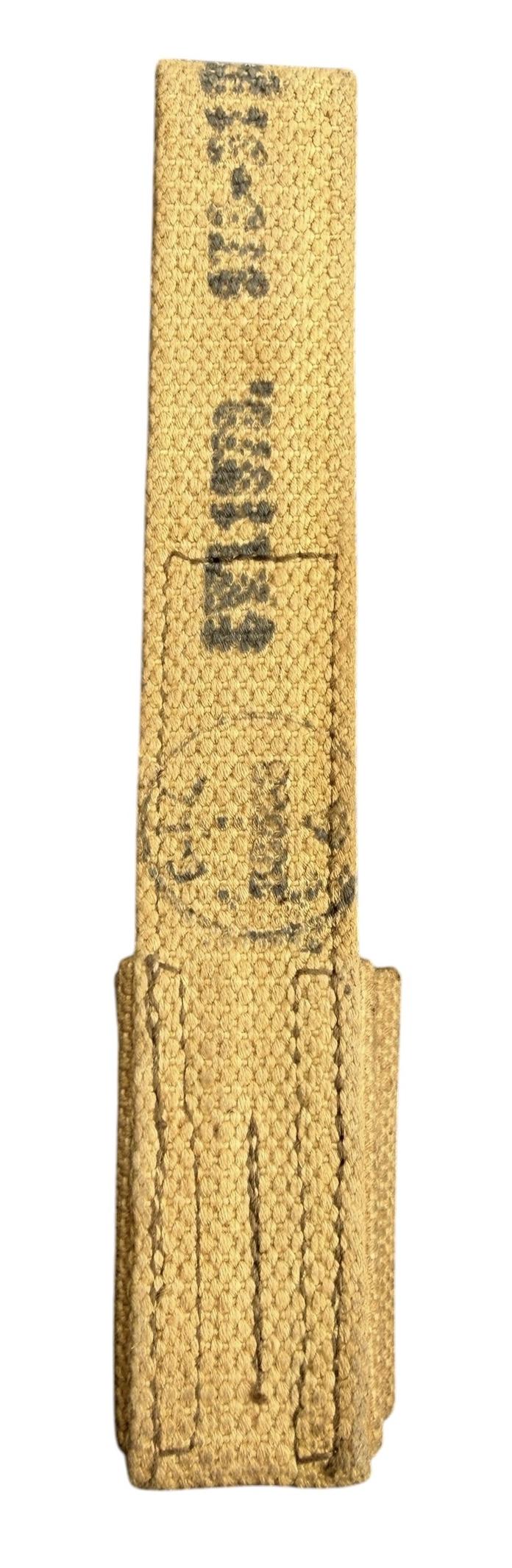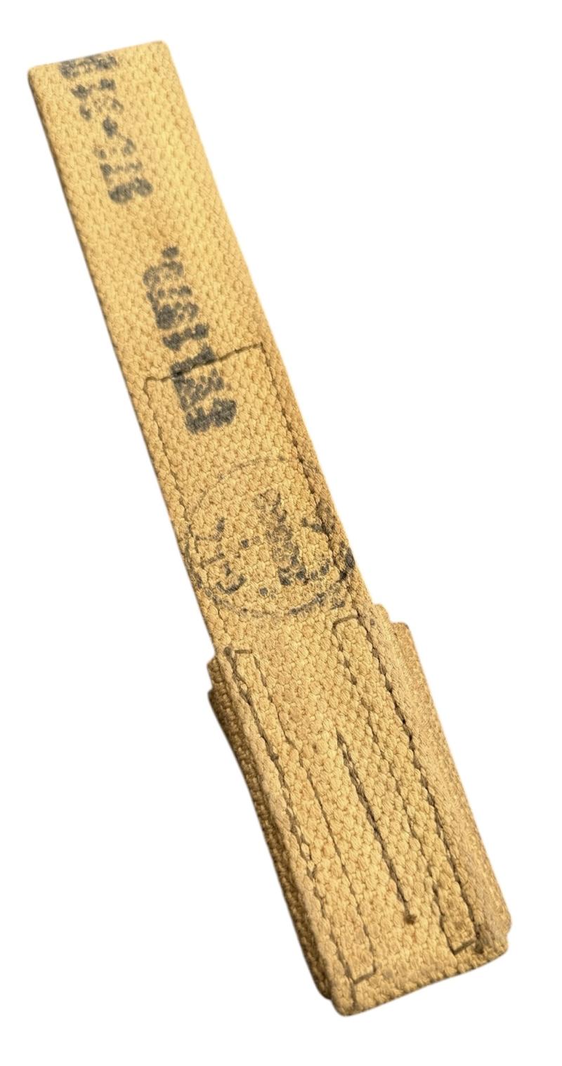 British WW2 Bayonet Frog Nice used British WW2 webbing bayonet frog Marker marked in its back but hard to read In used but in very good condition.
