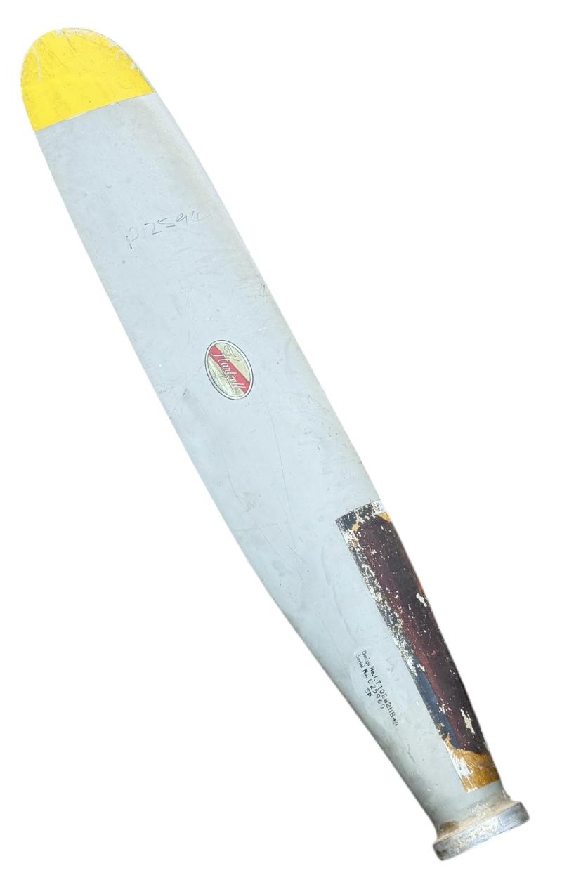 From a modern plane but very decorative Airplane propeller blade. Made by “Hartzell Propeller Inc, Piqua Ohio USA” serial number “C 25960 SP”
