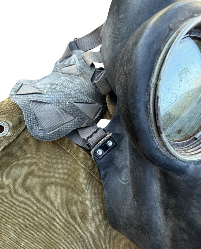 Nice used early model number 4 MKIII British WW2 gasmask and gasmask carrying bag dated “1941” its filter is dated “1942”. Rubber in good condition.