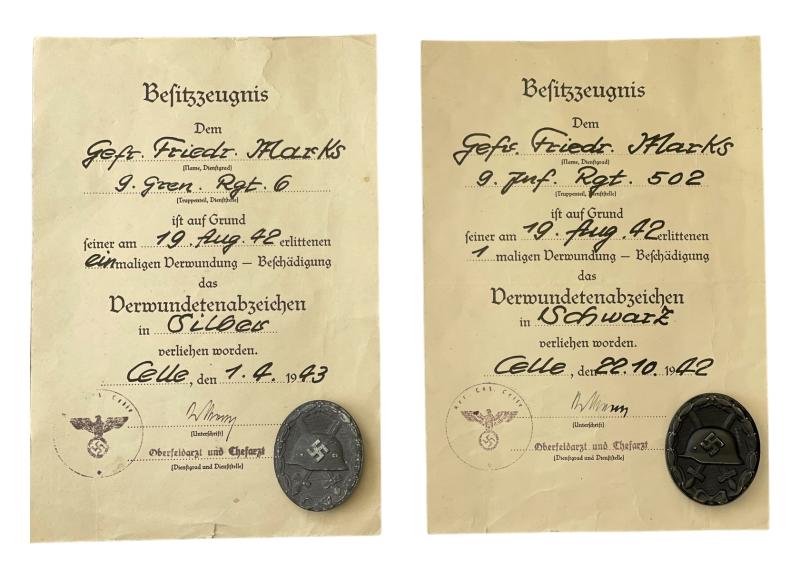 Nice used mid war Wehrmacht wound badge in black for 1 combat wound. Maker code marked “L52” which is “C.F. Zimmermann, Pforzheim”